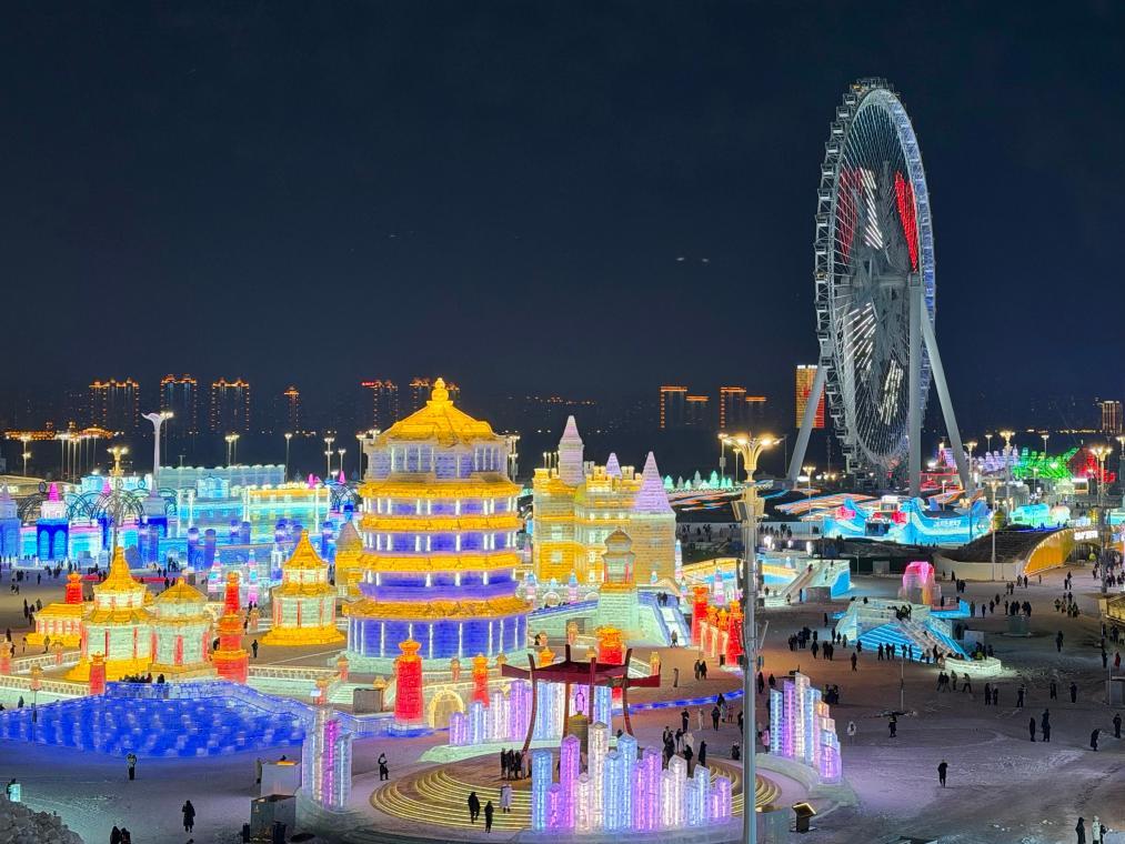 12月16日拍摄的哈尔滨冰雪大世界夜景。新华社记者杨思琪 摄